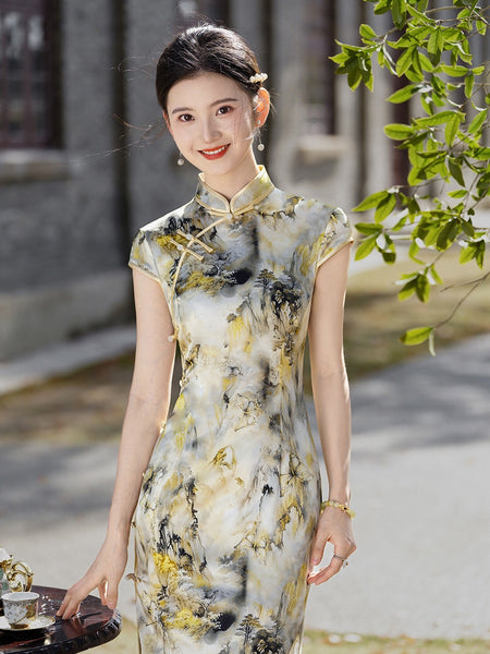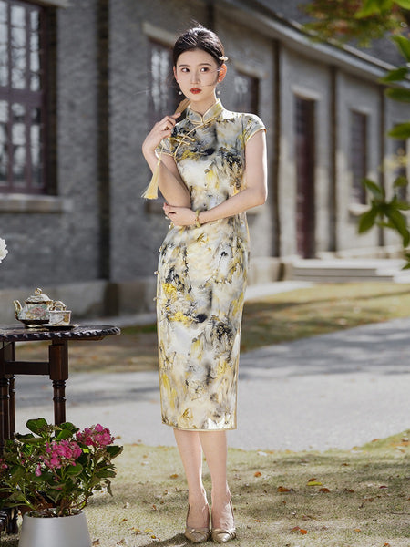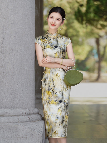This silk qipao is perfect for a sunny day out, evening party, social event, wedding ceremony or graduation party. It not only shows gentle and elegant curves from inside out on a women but also her intellectual beauty at different time, environments with different people. With its shorter length, it gives you more comfortable maneuver and less formality.