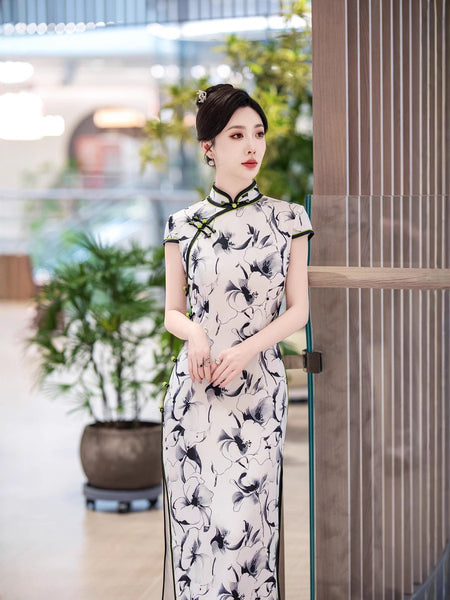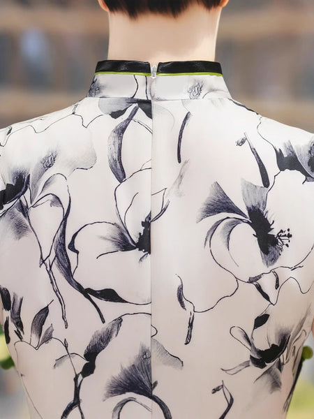 Modern Chinese Qipao dress, Evening Dress, floral qipao, mandarin collar