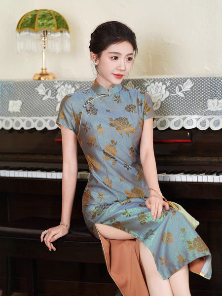 Modern Chinese Qipao, Mulberry Silk cheongsam, Evening Dress, mandarin collar