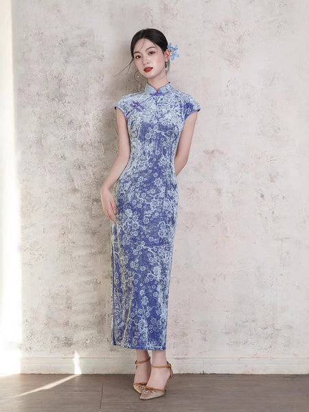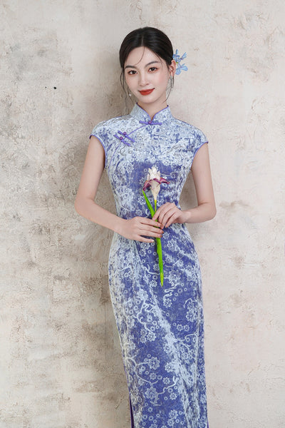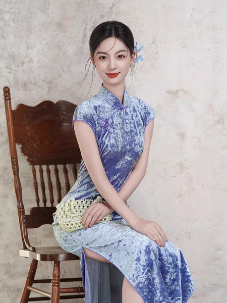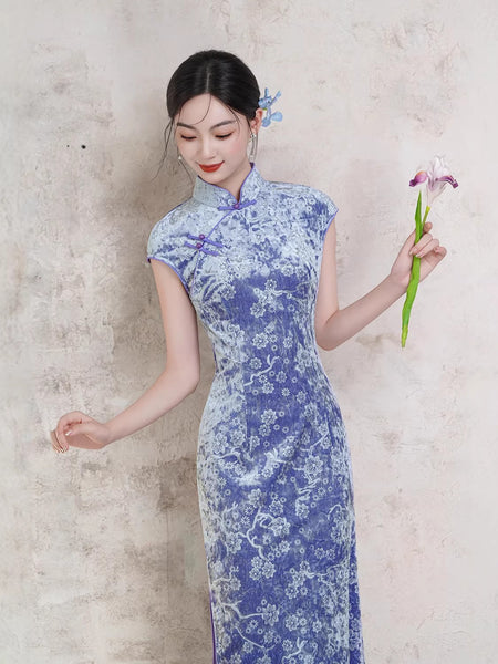 Modern Chinese Qipao, Chinese Cheongsam Dress, Evening Dresses, Ball Gowns, purple velvet qipao